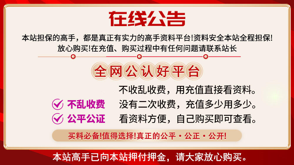 本站全面升级:资料均以金币出售,充值后自由购买,杜绝二次收费!所有资料经过验证后才能出售,资料没有期期100%中的,买卖随意 。 心态要摆正,错对绝不更改。大家要理性消费,本站资料我们只保证每期真实,错对难免,六合不是谁家自己开的,没有百分百包中的说法。只保证彩民买到是百分百真实资料。欢迎各路高手前来发表, 注册成功在联系管理员充值金币管理员